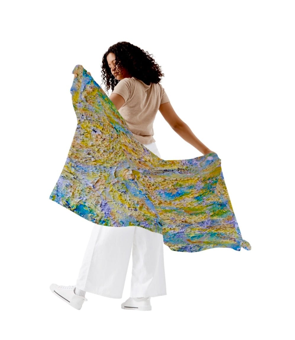 This long scarf, printed from an original artwork